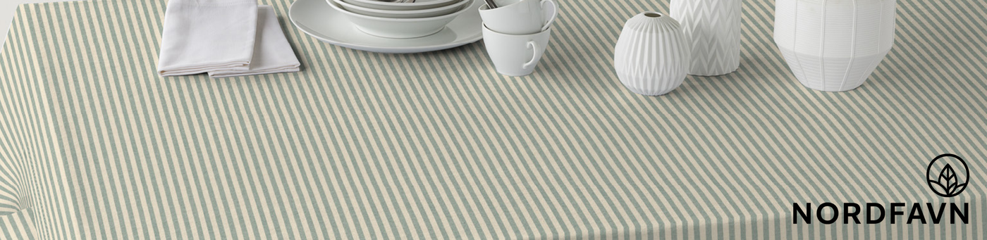 Nordfavn Ibiza Støvet Grøn – Stribet tekstilvoksdug i rolig grøn nuance