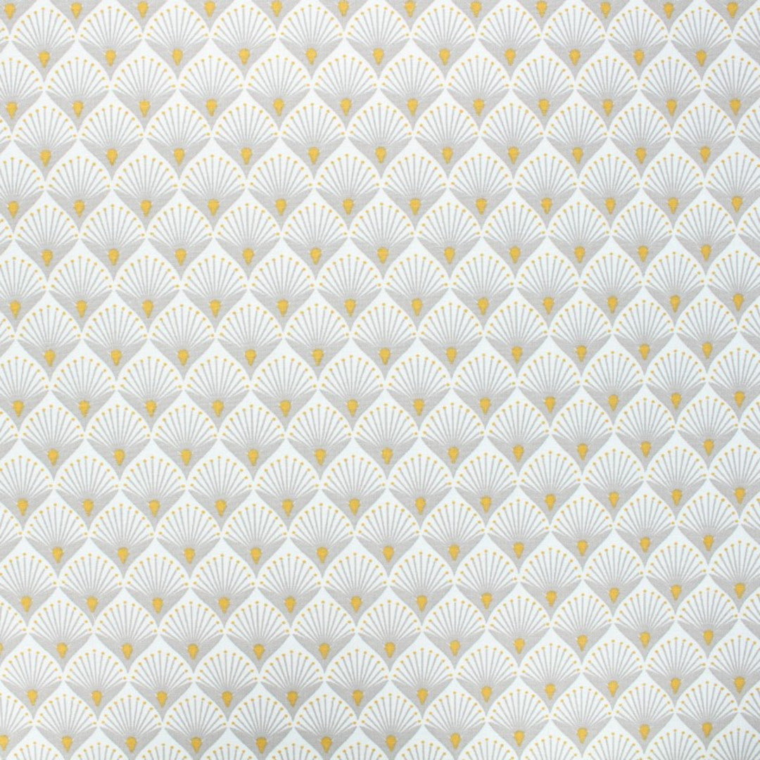 Elegant tekstilvoksdug med et let og gentagende grafisk mønster i bløde natur- og sandtoner. De fine vifteformer skaber et harmonisk udtryk, der giver bordet ro og balance.