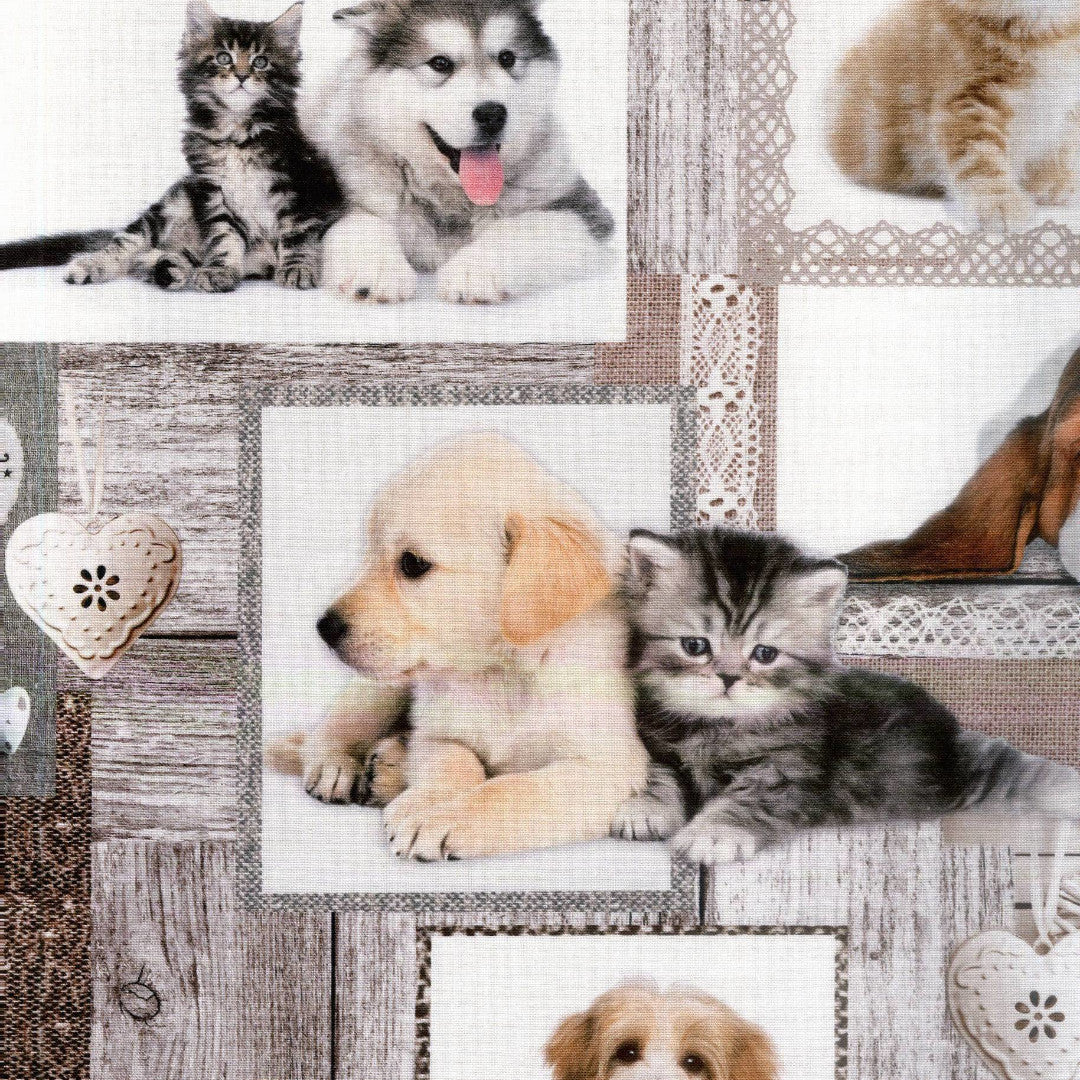 Bedste Venner – Tekstilvoksdug med hundehvalpe og killinger