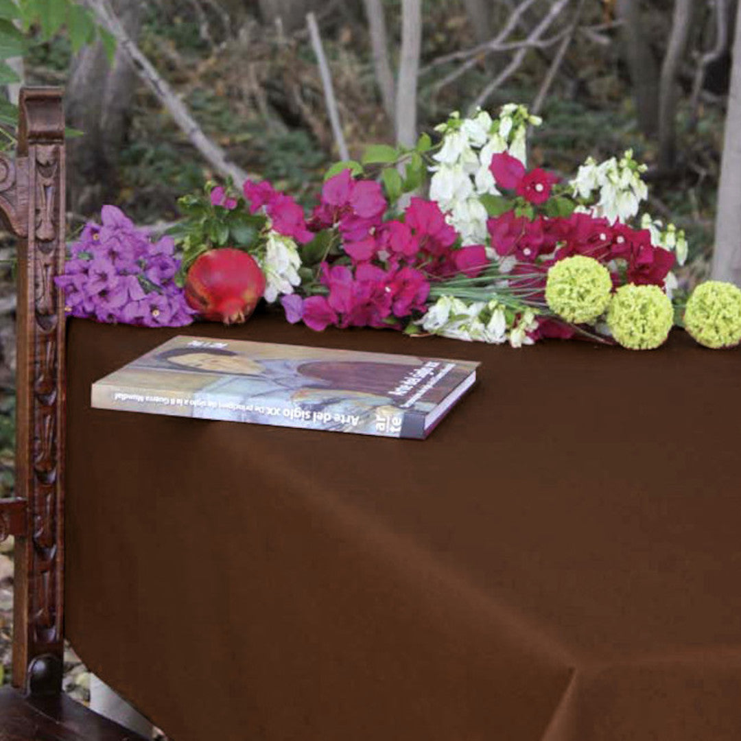 Ensfarvet tekstilvoksdug i en dyb chokoladebrun nuance, der giver bordet et varmt og elegant udtryk. Den mørke farve tilfører ro og tyngde og passer smukt til både klassiske og moderne borddækninger.