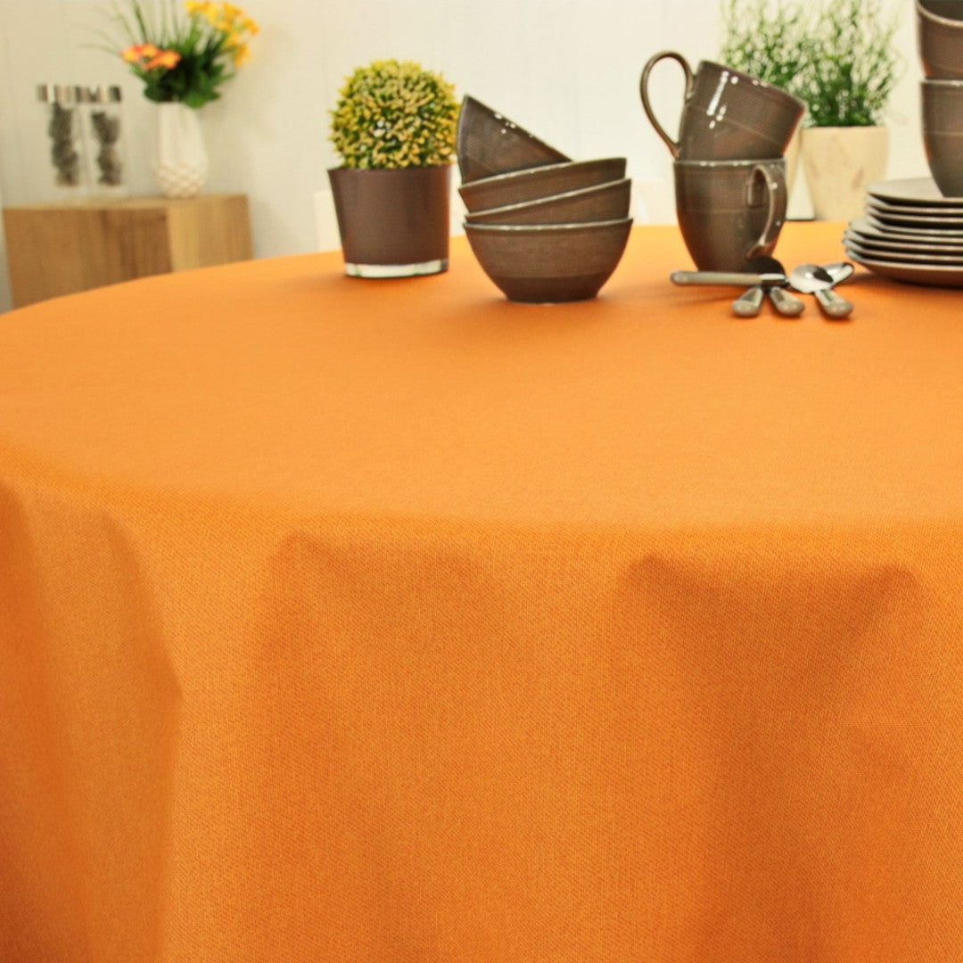Ensfarvet tekstilvoksdug i en varm appelsinfarvet nuance, der tilfører bordet energi og et indbydende udtryk. Den klare orange tone skaber glæde og liv og fungerer som et smukt blikfang i både køkken og spisestue.