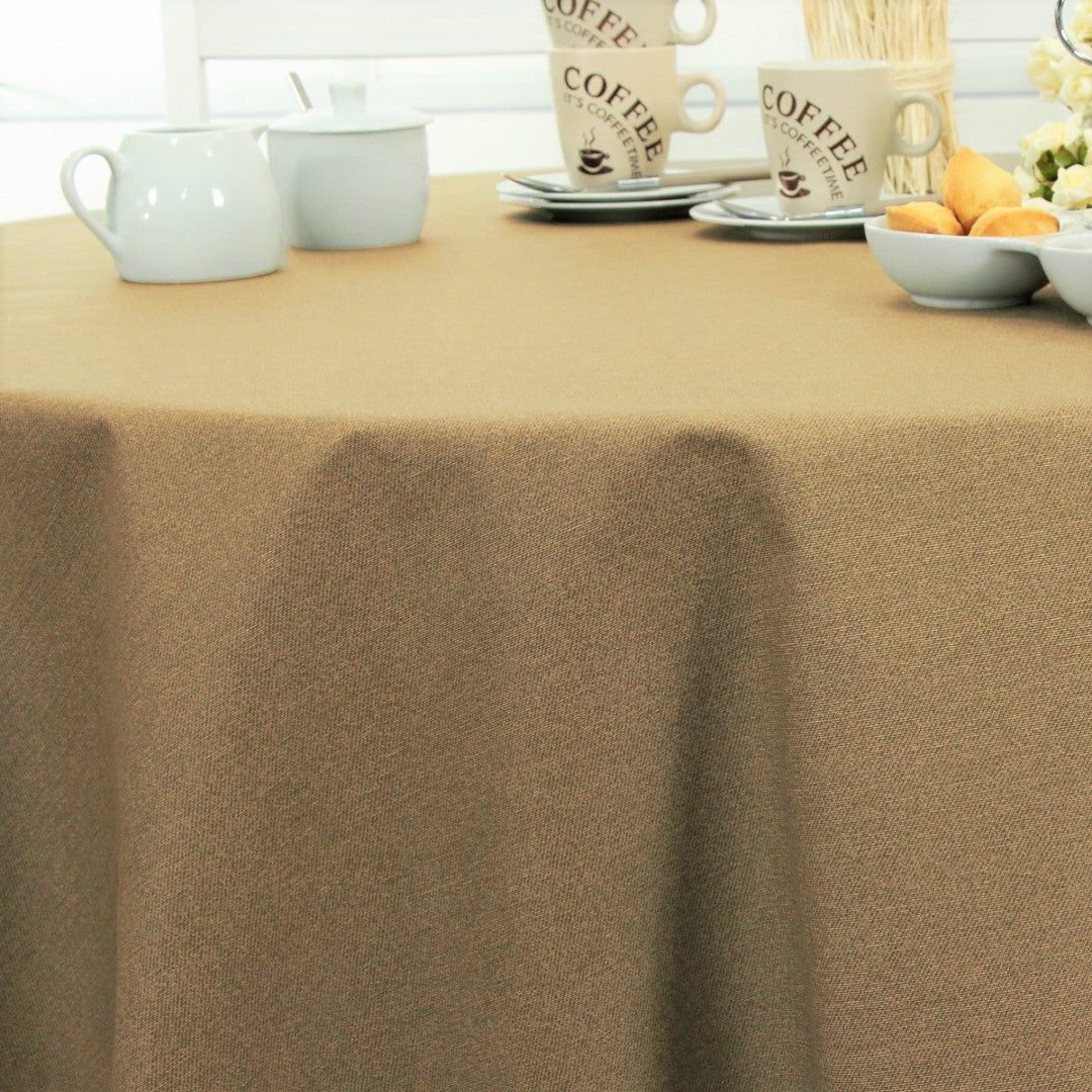 Lys og indbydende tekstilvoksdug i en varm sandfarvet nuance, der giver borddækningen et naturligt og afslappet udtryk. Den fine vævning i overfladen skaber et diskret stoflook med en blød og behagelig fremtoning.