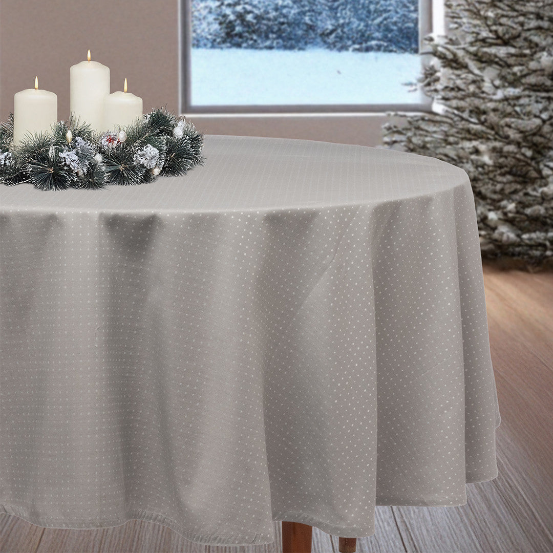 Dotea Grå Blå – Rund damaskdug med diskret prikmønster Ø200 cm