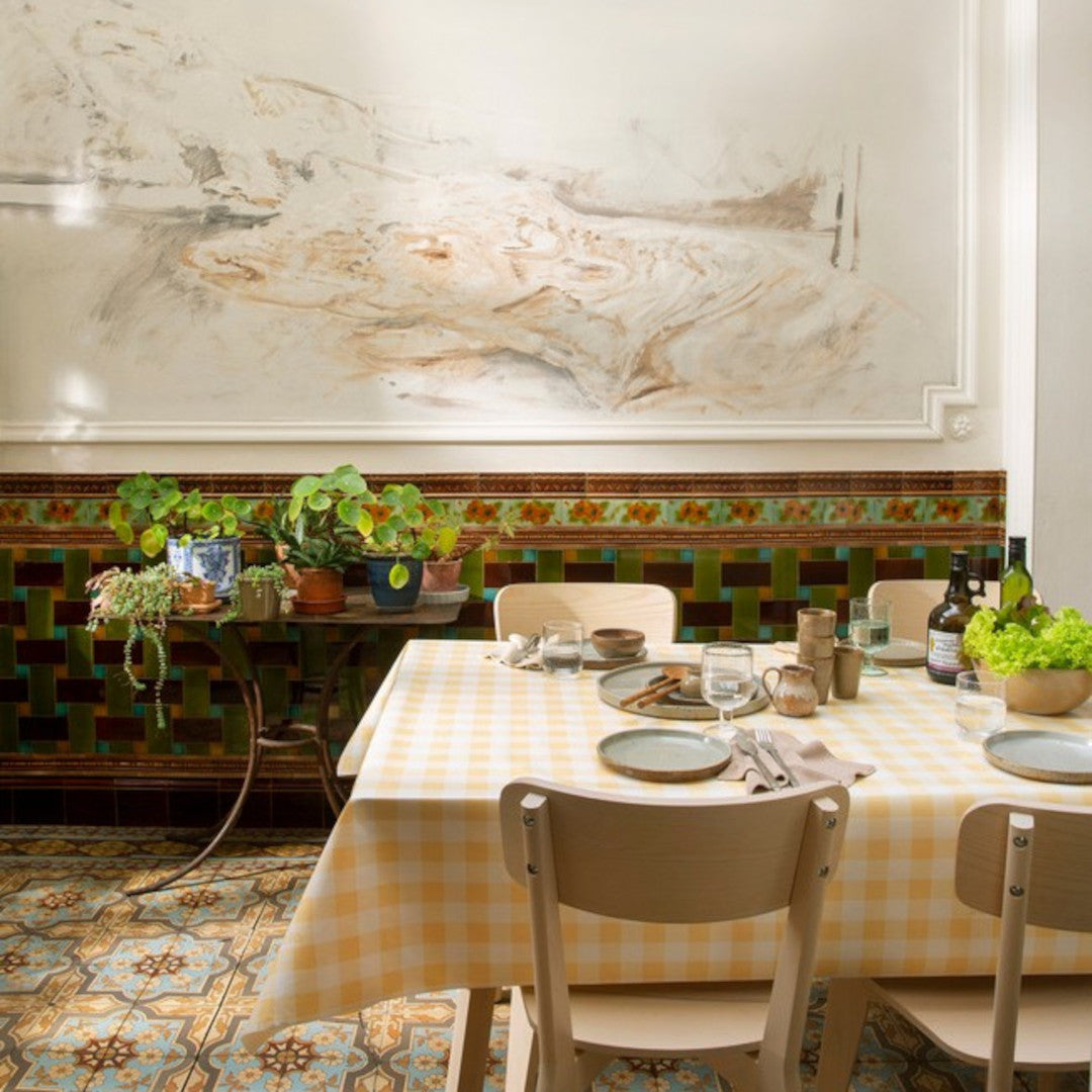 Den lyse farvekombination tilfører varme og lethed til borddækningen og fungerer året rundt – fra hverdagsmåltider til hyggelige sammenkomster. Den glatte overflade er nem at tørre af og gør dugen praktisk i brug. En alsidig voksdug, der fås i flere farver og er nem at kombinere med både moderne og klassisk service.