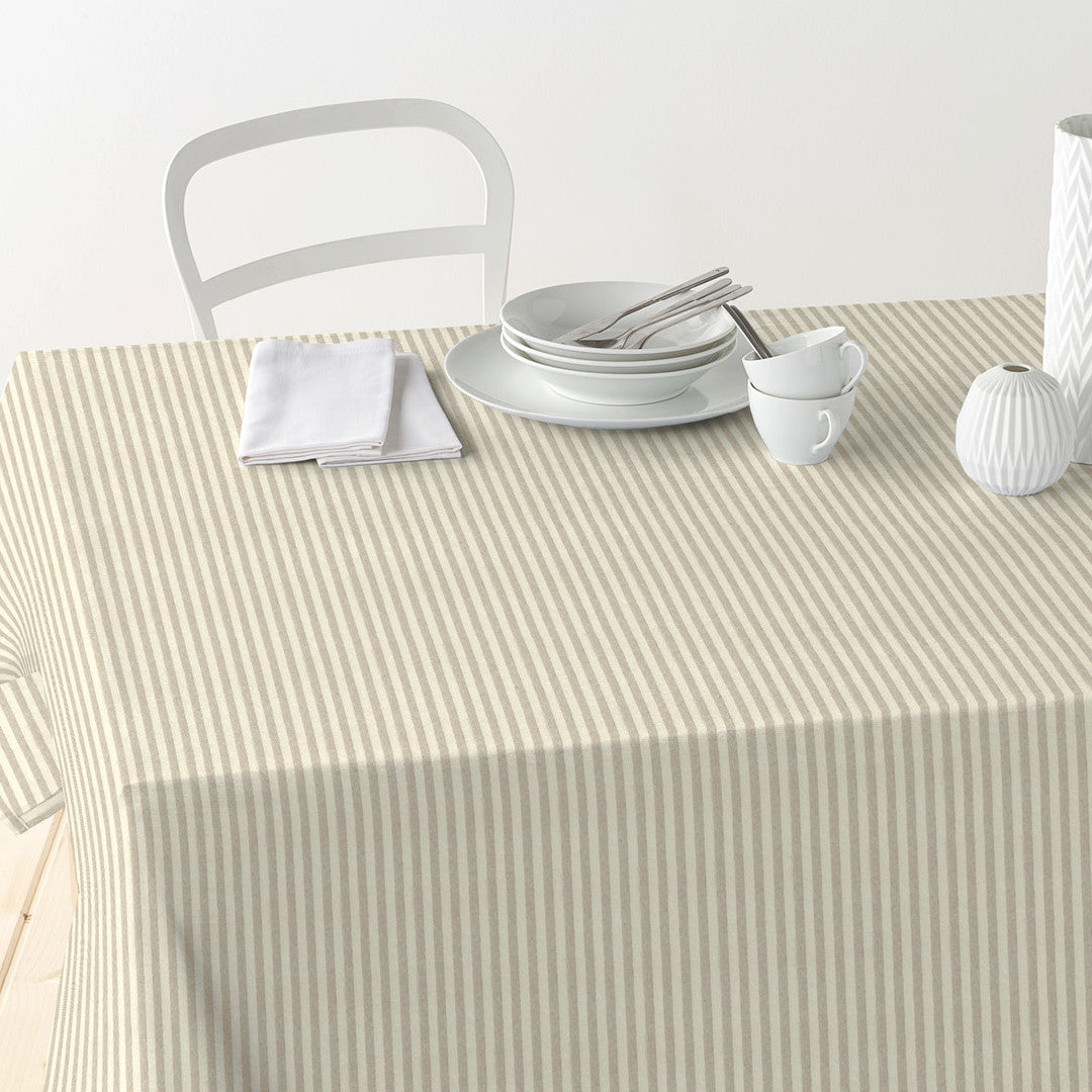 Nordfavn Ibiza Lys Sand er en rolig og tidløs tekstilvoksdug med fine, tværgående striber i lyse sandfarvede nuancer på en blød, naturfarvet bund. Det diskrete stribemønster giver bordet et let og afbalanceret udtryk, som passer smukt ind i både nordiske hjem og sommerlige omgivelser.