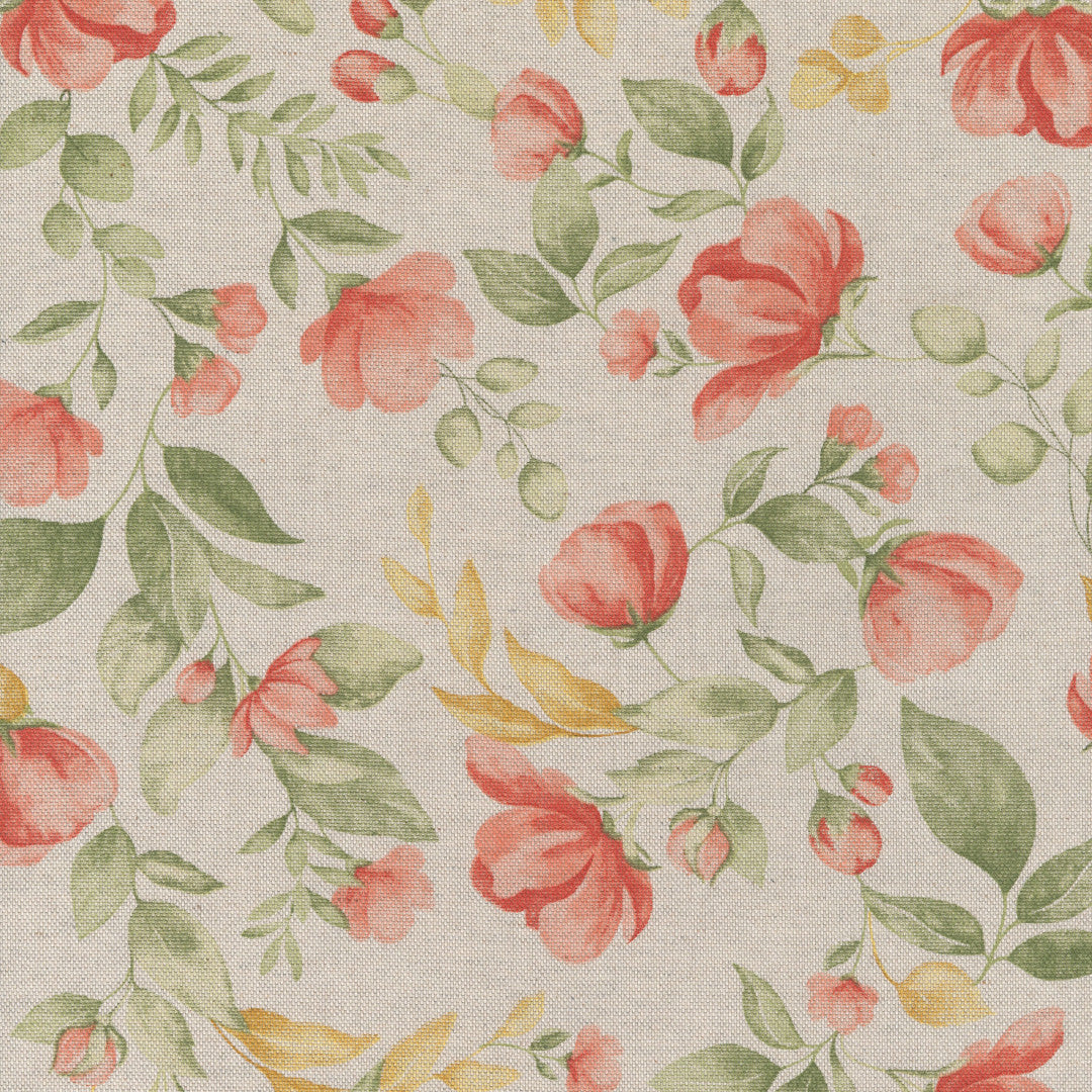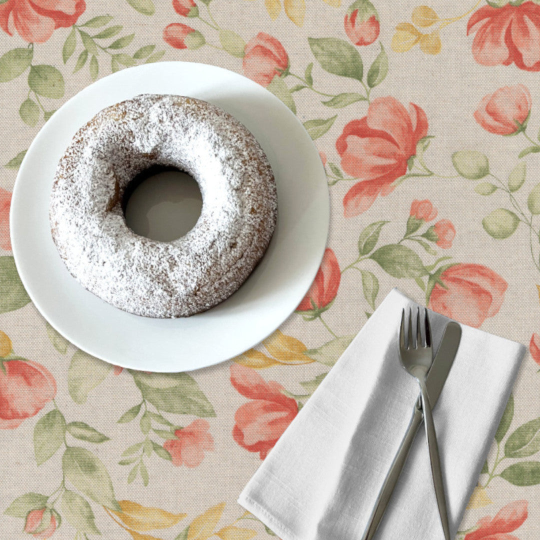 Roselia Bloom – Tekstilvoksdug i hørlook med bløde blomster