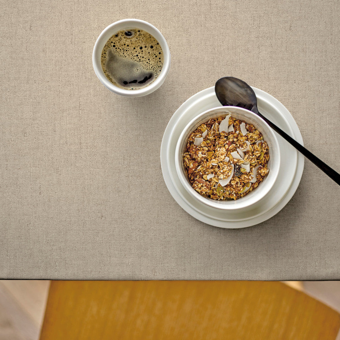 Structure Natur er et oplagt valg til dig, der foretrækker et minimalistisk udtryk med fokus på materialer og overflade. En tekstilvoksdug, hvor funktion og æstetik går op i en højere enhed og skaber en rolig ramme om måltidet.