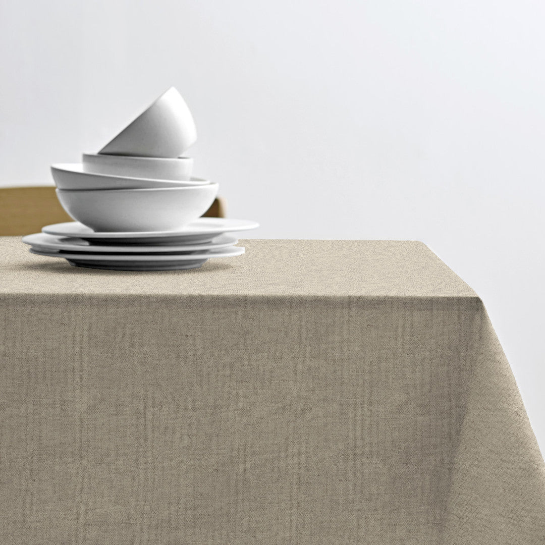 Den tekstile overflade i 100 % bomuld giver dugen et blødt og eksklusivt præg, mens den skridsikre bagside hjælper dugen med at ligge stabilt og pænt på bordet. Den afdæmpede naturfarve gør dugen nem at kombinere med både porcelæn, glas og sæsonens øvrige elementer.